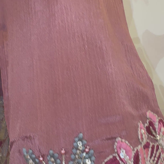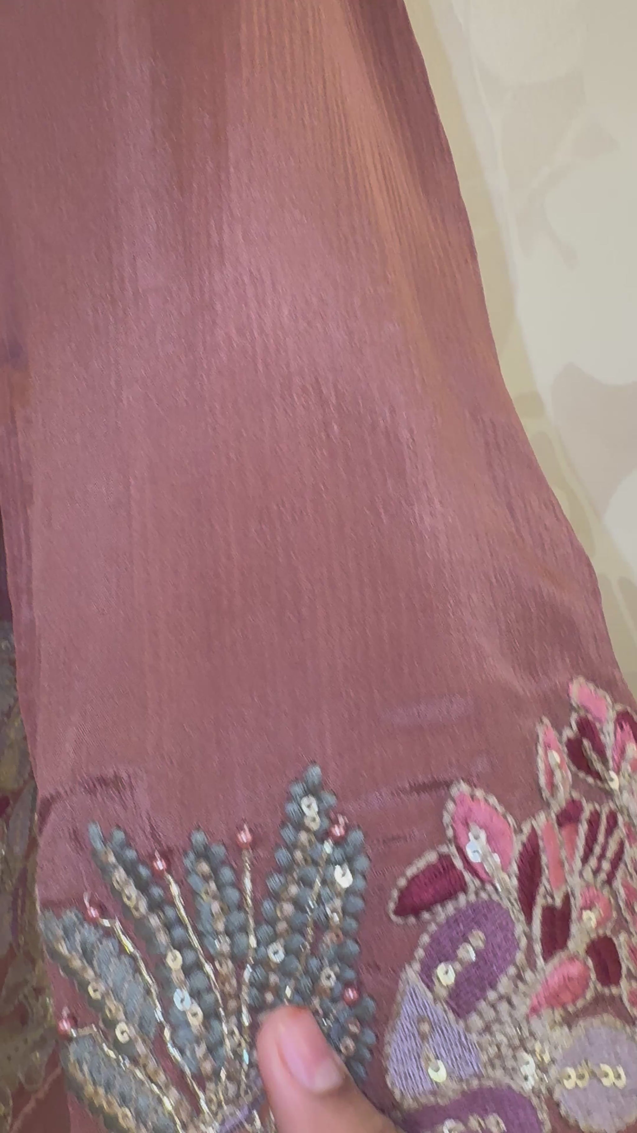 Delicate floral embroidery and intricate handwork elevate the classic brown hue, adding sophistication and charm to every detail. Perfect for festive events, mehendi celebrations, or evening soirées, this set blends traditional craftsmanship with modern silhouette — making it a statement piece in every wardrobe.