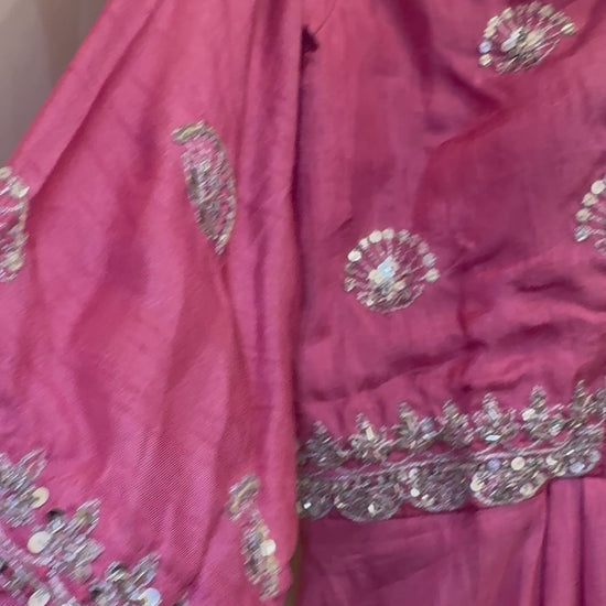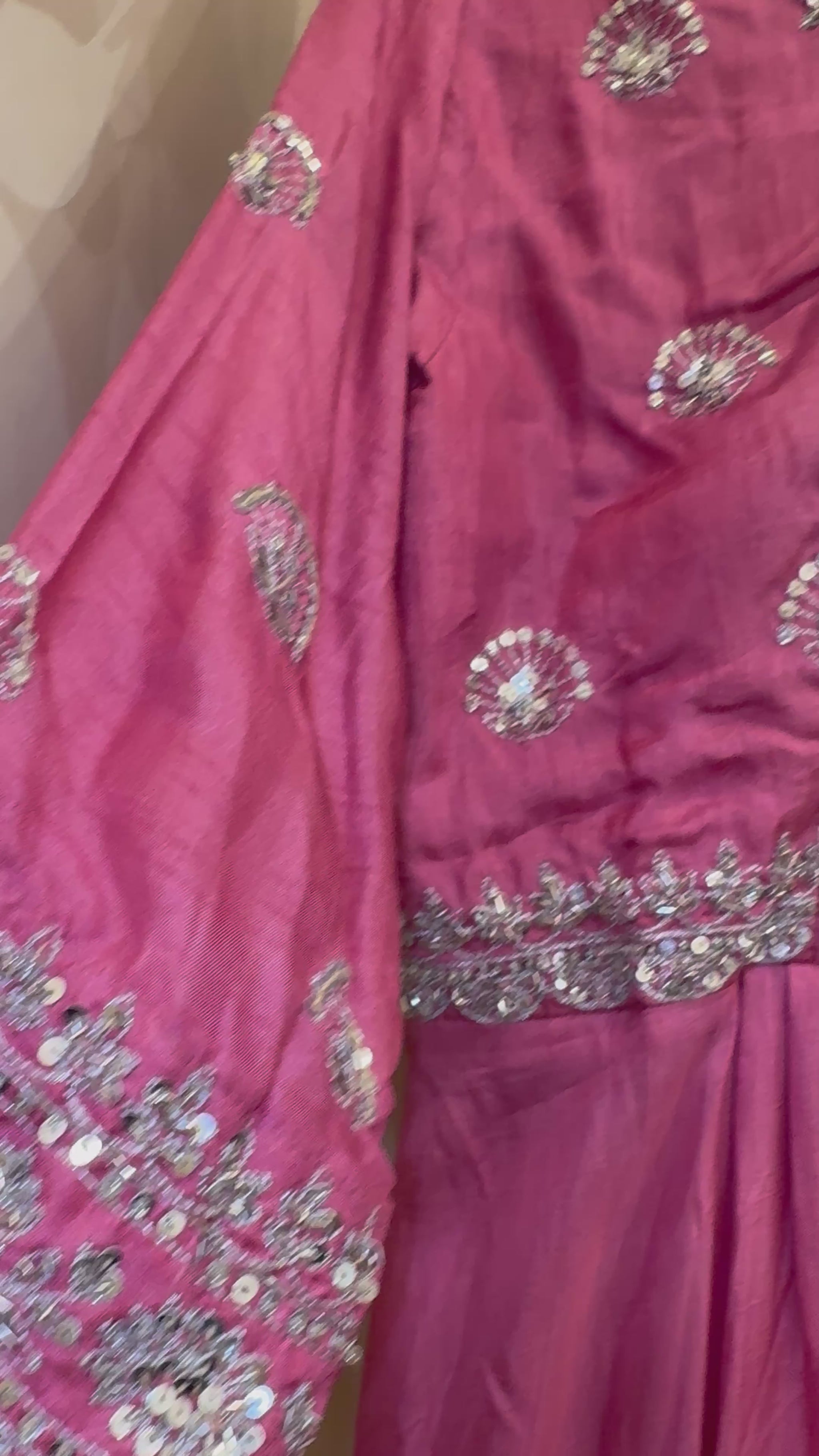 Introducing the Noor Zardosi Pink Indo-Western Set — a masterpiece of handcrafted elegance. The front-short, back-long layered top features exquisite zardosi handwork detailing all over, exuding festive sophistication.