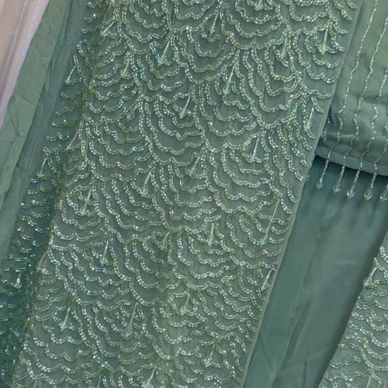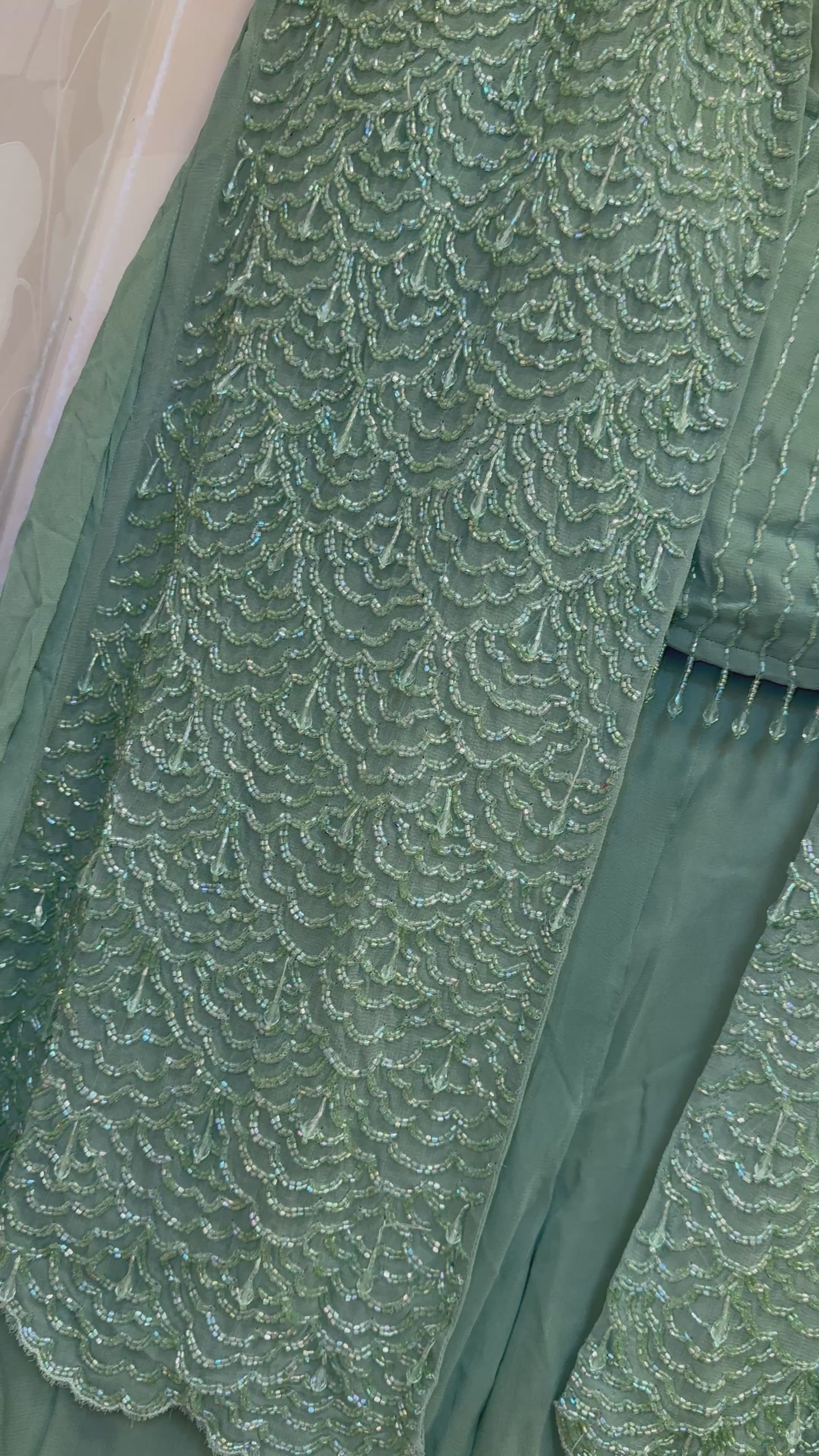Olive Handwork Cape Set – Cutdana Embellished Top with Palazzo