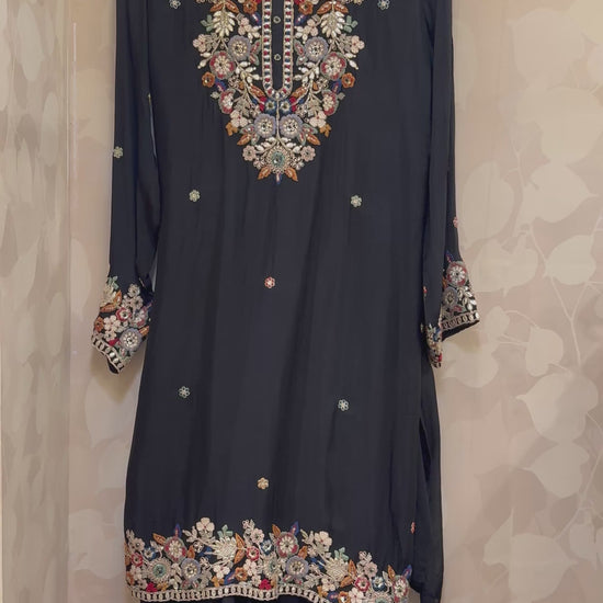 Step into timeless elegance with our Amaira Black Sharara Set, a stunning fusion of traditional artistry and modern grace.