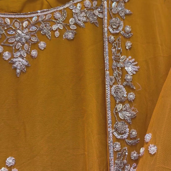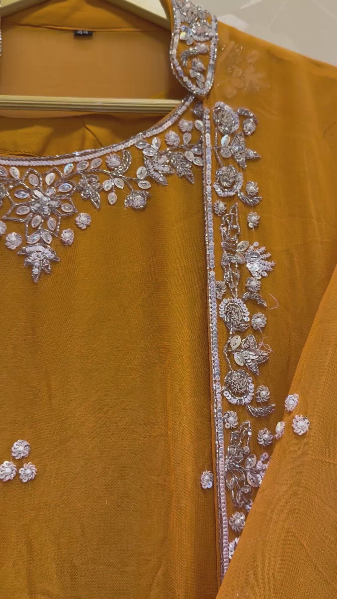 Orange Handwork Jacket Set – Pure Viscose Kurta with Mulin Pants