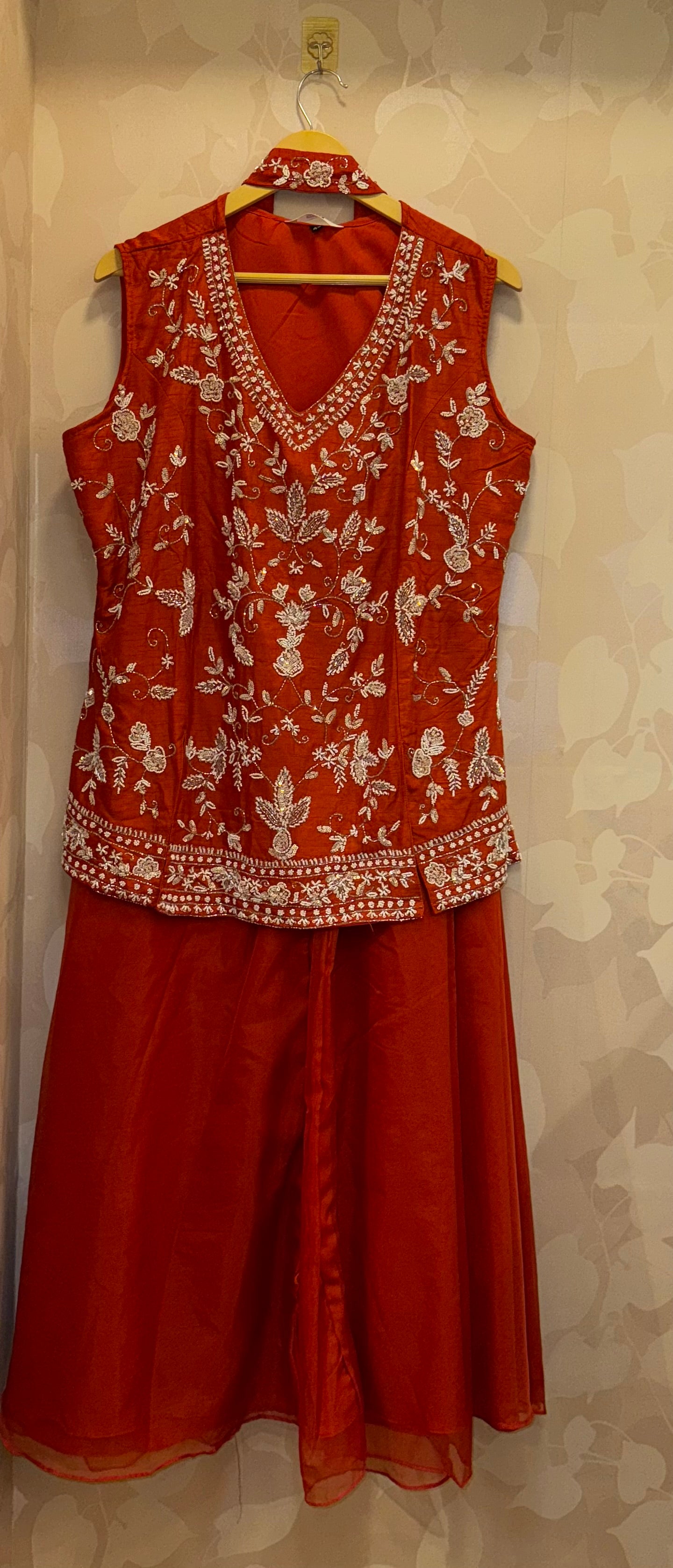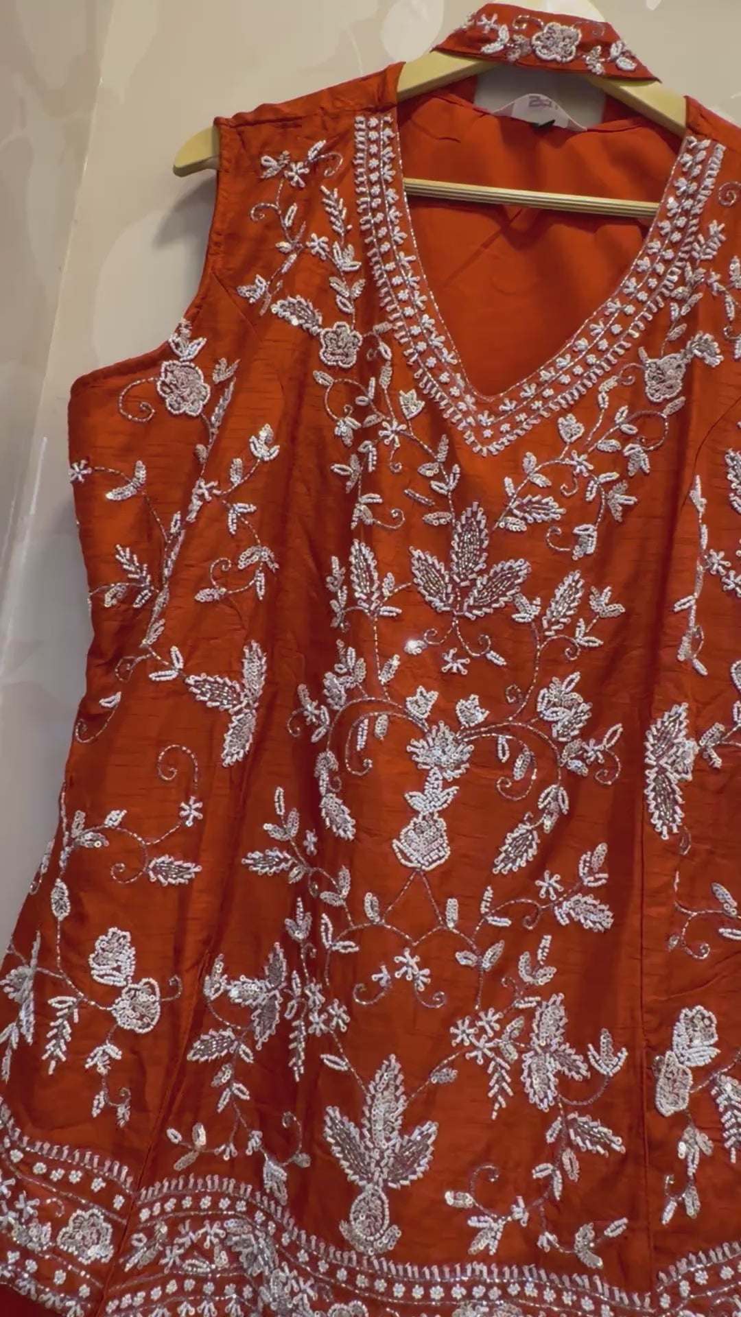 Gracefully blending contemporary style with feminine elegance, Ethereal Bloom features a fusion-cut top crafted from delicate organza, designed to flatter with its modern silhouette. Paired with flowy palazzo pants, this ensemble offers effortless sophistication for festive gatherings, cocktail events, or elegant daytime celebrations.