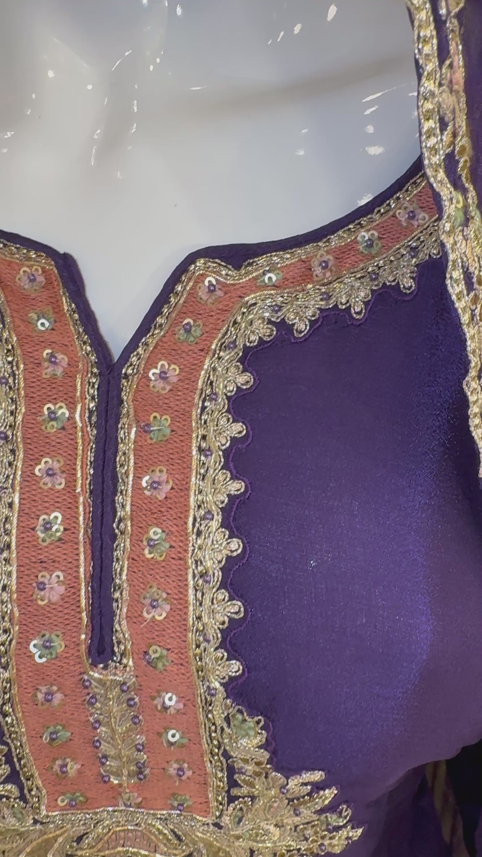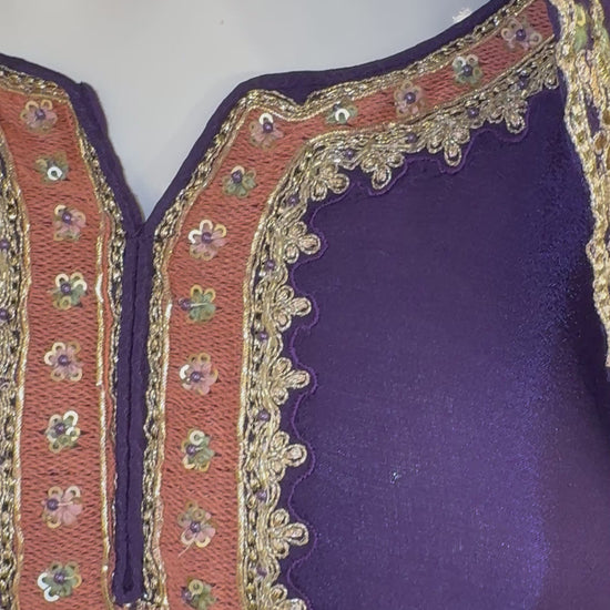 The deep purple hue adds a regal charm, making it perfect for festive gatherings, mehendi functions, or wedding celebrations where tradition meets modern luxury.