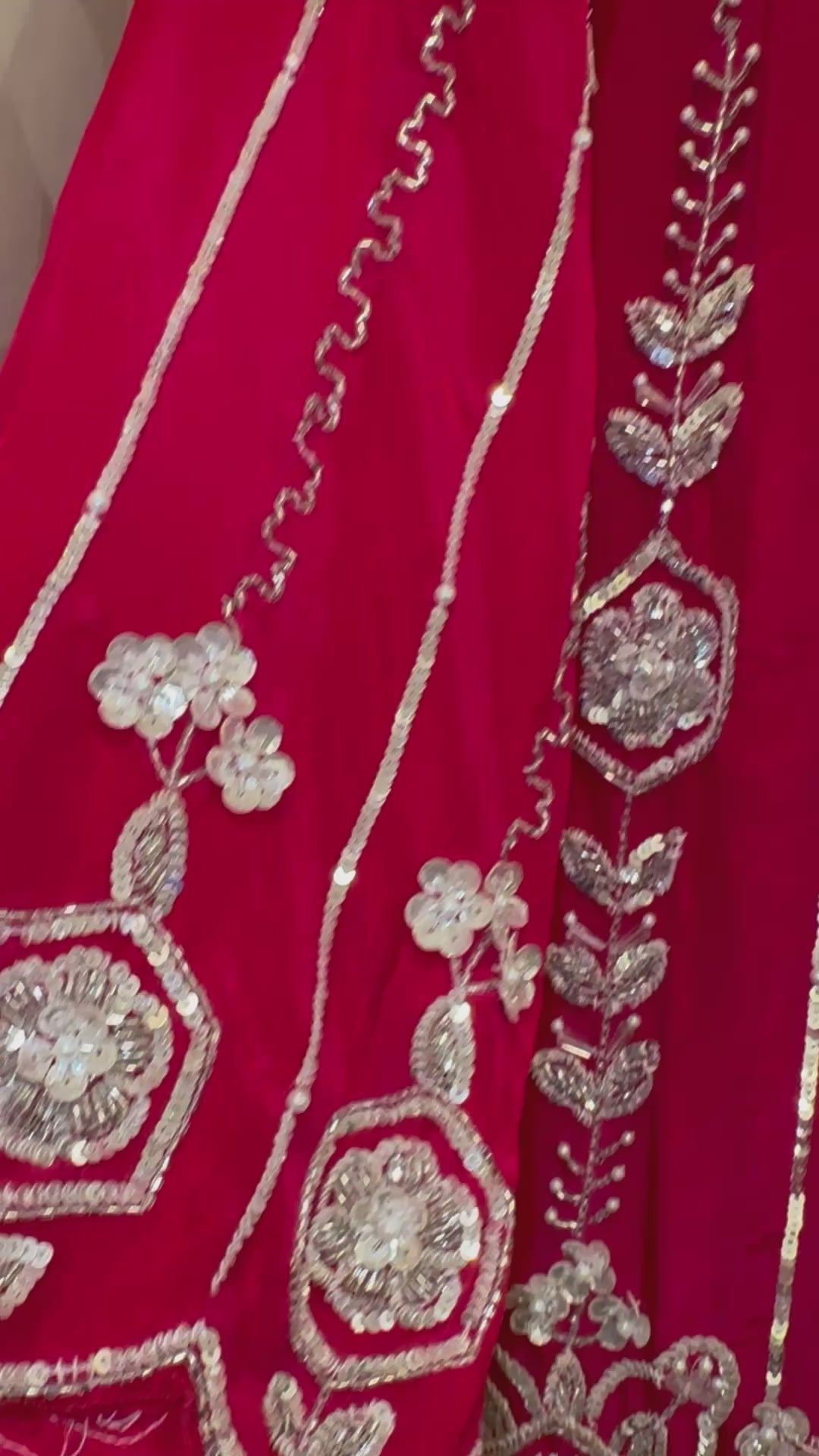 A contemporary and chic Red Festive Co-ord Set—perfect for a Sangeet, cocktail party, or any grand celebration. The heavy Cutdana work eliminates the need for excessive accessorizing. Style it with simple gold earrings and sleek hair for a modern, high-fashion look.
