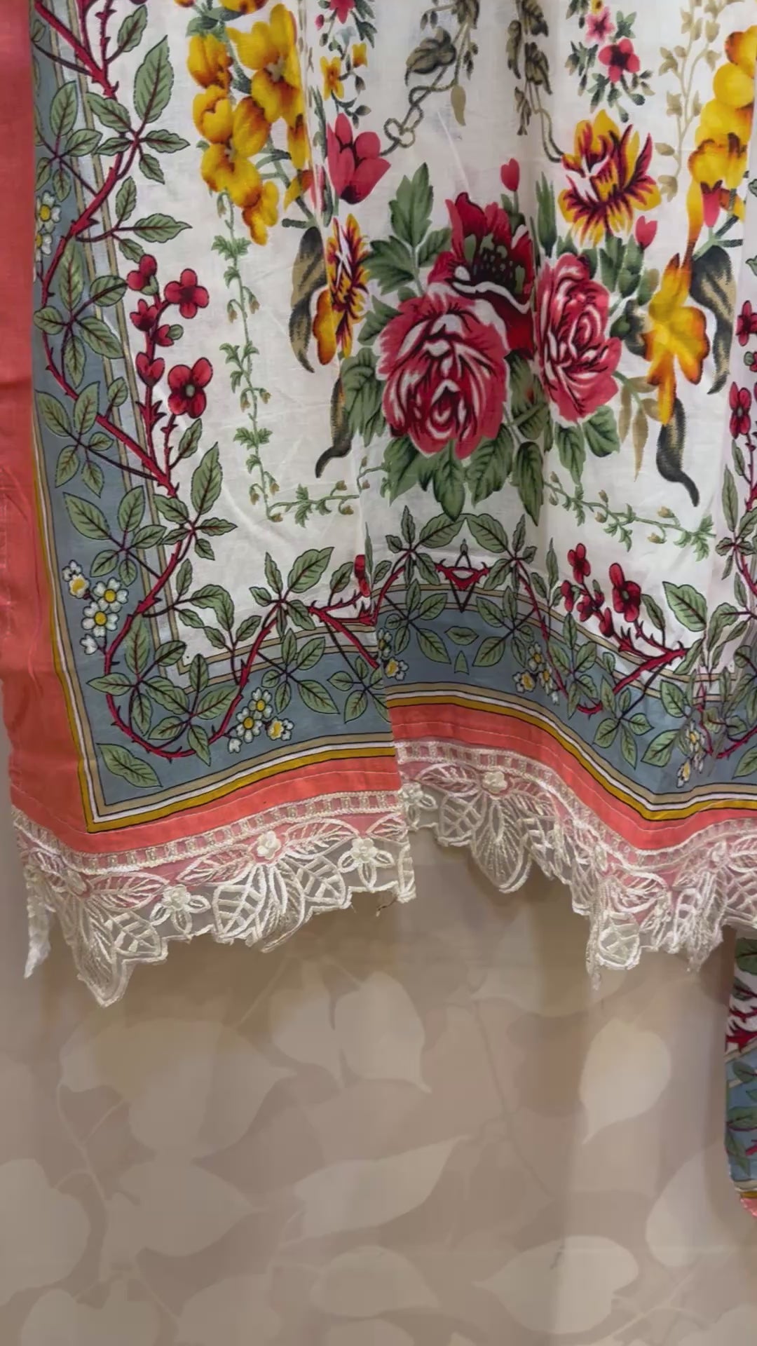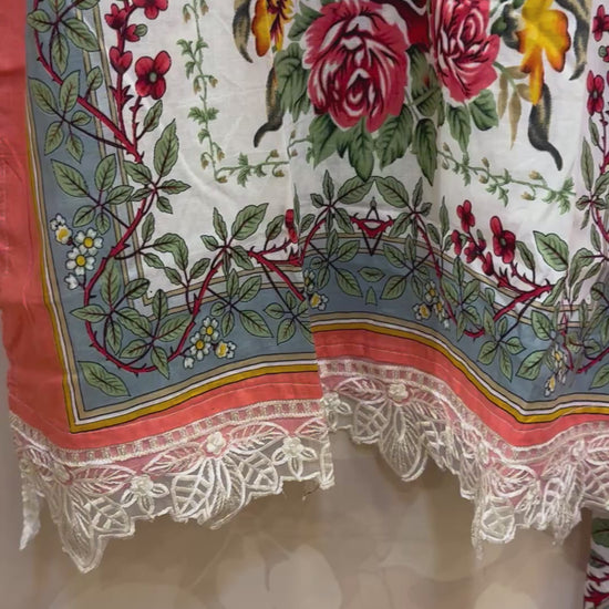 Off-White Lawn Suit with Peach & Green Highlights