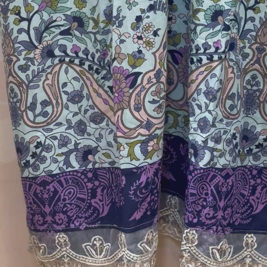– Light Blue Lawn Suit with Purple Patchwork